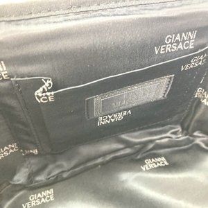 NAME: VERSACE vintage stripe Hand Bag pouch with mirror Vanity bag