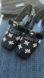 Stylish black mesh flats adorned with floral embellishments. Perfect for adding a touch of elegance to any outfit.