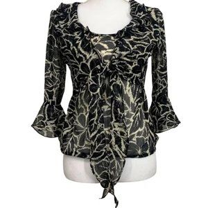 VERSATILE THREAD / Black & Cream Sheer Ruffle Front Tie Blouse