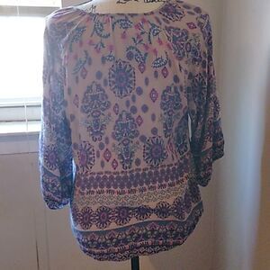VERSE 3/4 SLEEVE BOHO MULTICOLOR PAISLEY PRINTED V-NECK BLOUSE 100% RAYON SMALL