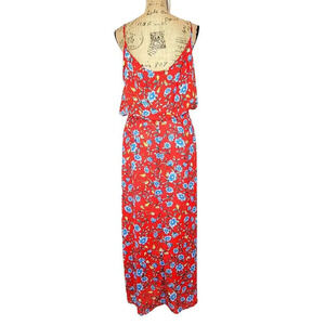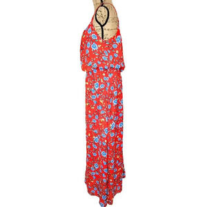 VERSE Womens Floral Boho Blouson Spaghetti Strap Maxi Dress Size XL Red Blue