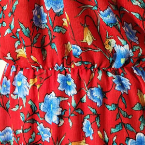 Red with bright blue flowers, crepe knit
