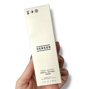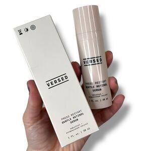 VERSED Press Restart Fine Lines Firmness Treatment Gentle Retinol Serum. Gentle enough for sensitive skin and first-time retinol users, this serum delivers the tone and texture-reforming benefits of retinol without the redness, dryness or peeling. Gel-Cream Formula.