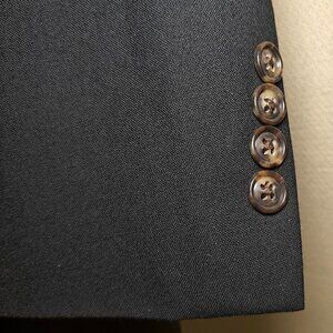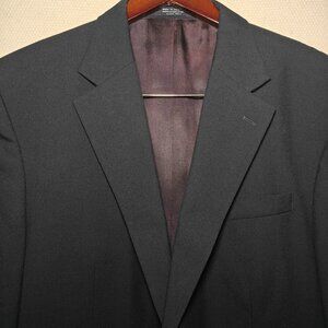 This VERSINI Men's Black Two Button Jacket is made of 100% Wool in size 44R. It features a Four-Button sleeve style, Notch lapel, Single-Vented design, and inner pockets. Suitable for both Casual and Business occasions in Fall and Spring seasons. The classic fit jacket has a solid black color, polyester lining, and is designed in Colombia.