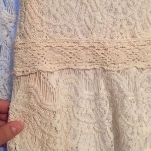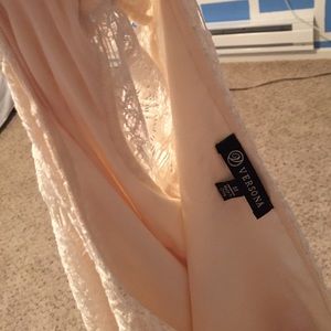 BRAND NEW! I have never worn it. I bought it in Arkansas and I never wore it. The tags aren't on it since it was an expensive dress that my grandmother bought and I ripped the tags so she would believe me that I wore it. I didn't want to hurt her feelings. Beautiful lace throughout entire dress with see through lace on arms