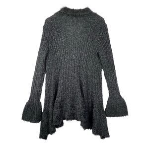 VERTIGO Fuzzy Eyelash Plush Knit Tie Front Asymmetrical Bell Sleeve Black Women's Cardigan Large