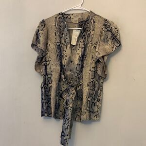 VERTIGO PARIS BLOUSE short sleeve snakeskin Size S NWT
