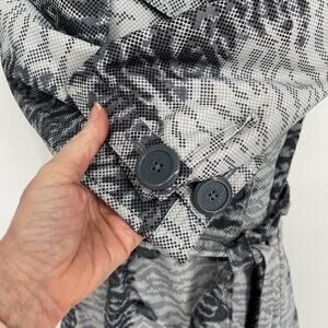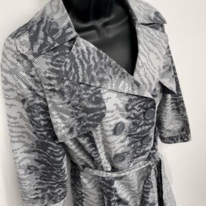 VERTIGO PARIS Snake Print Trench Coat Folded Neckline XS 3/4 Sleeve Gray, Black