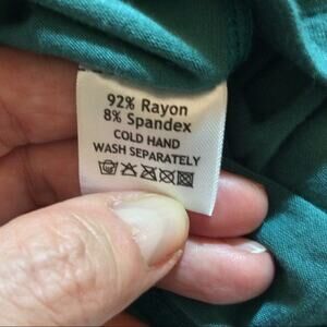 From Vertigo Paris, a beautifully cut teal blue to green tunic top with defined waist. Small. 92%rayon 8%spandex