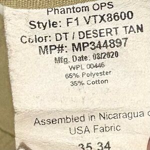VERTX Men's Tan Tactic Cargo Pants Size 35 x 34