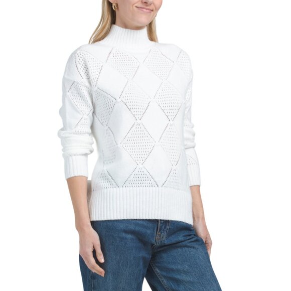 VERVE AMI Ivory Bobble Diamond Pointelle Mock Neck Pull Over Sweater