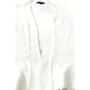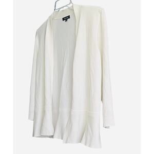 This is the perfect addition to your closet - open-front lightweight Ivory sweater that can be worn with nearly any outfit; Spring & Fall; long set-in sleeves with 1.5" ribbed cuffs; 1.5" placket from neckline to hemline; 5.5" wide slightly ruffled hemline