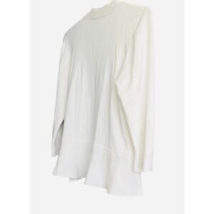 VERVE AMI OPEN- FRONT SLIGHTLY RUFFLED HEMLINE SWEATER, WOMENS-XL-IVORY, LNG SLV