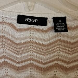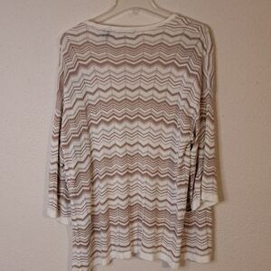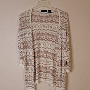 VERVE Women's Zigzag Pattern Cardigan Sweater - Cream and Tan size 1X