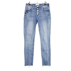 VERVET by Flying Monkey T5068 Amber Mid Rise Button Fly Raw Hem Skinny Denim Blue Jeans SIZE 29