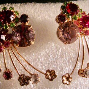 THESE SPARKLING BEAUTIFUL PIERCED EARRINGS SIGNED KIRKS FOLLY MAKE THIS PAIR A COLLECTOR'S ENVY! They have wonderful sparkling faceted cut set stones which can take your breath away! They measure slightly over 1-1/2" long by 1" wide and the lucky buyer will receive them in a FREE gift box (while supplies last). The stones at the top have a great display of color and the added stones on some of the flaring ends is another bonus of the beauty we expect from Kirks Folly. Notice that you can wear them left on left lobe and the same on the right. This way they will frame your face better. These are very RARE and are signed on the backs. The finish on these is a rose gold and adds to the overall beauty! These are a Favorite of this seller. Any questions, please feel free to ask the seller.