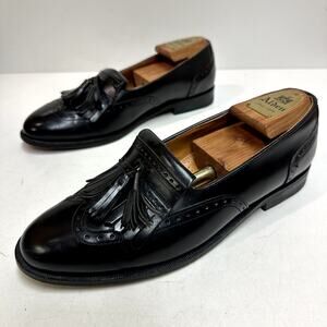 VERY GOOD Cole Haan Tassel Loafer Kiltie Wingtip Black Calf Made Maine USA 8.5