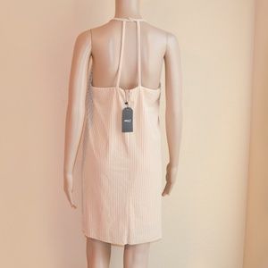 VERY J Bia Beige Stripe Velvet Strappy Swing Dress NWT