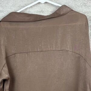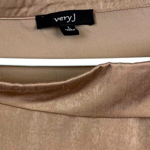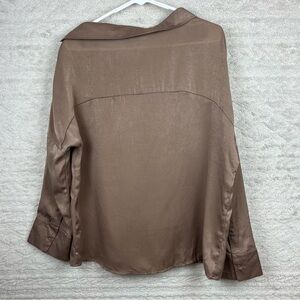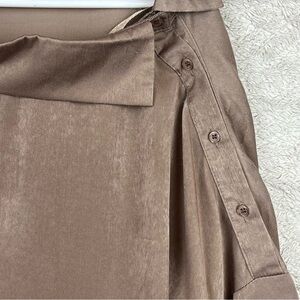 VERY J Unique Collared Shimmery Blouse Shoulder Buttons Large Funnel Neck