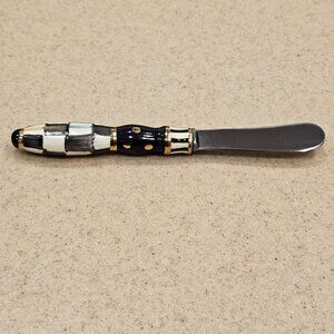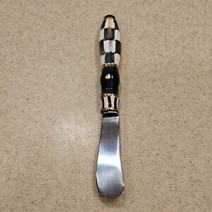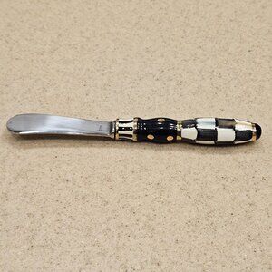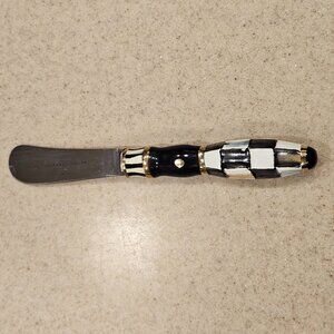 VERY RARE MACKENZIE CHILDS BLACK TIE COURTLY CHECK CERAMIC CANAPE BUTTER KNIFE