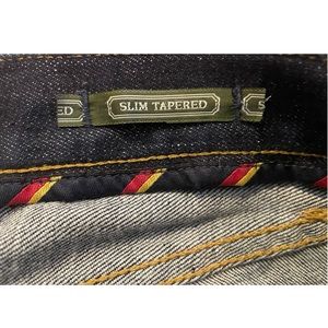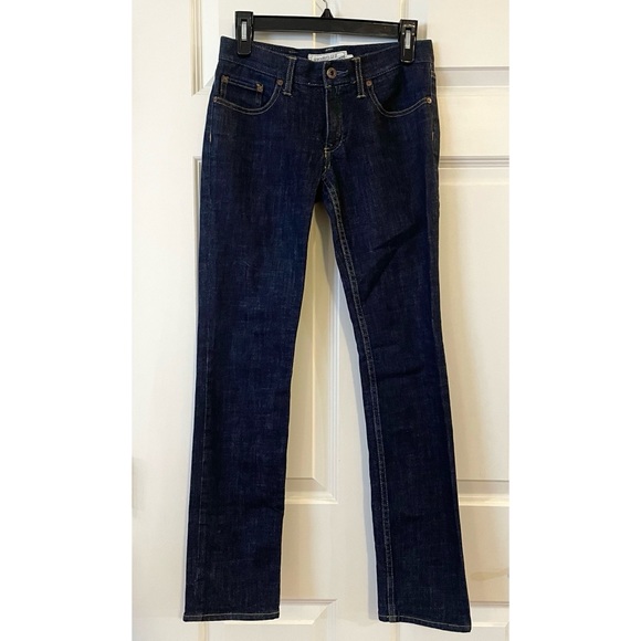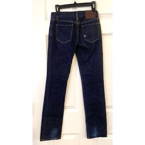 Description: Slim, dark wash jeans. No Stretch.