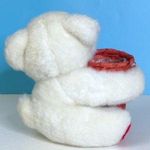 VERY RARE Vintage PBC White Red Teddy Bear w/ Basket 8" Plush Stuffed Animal Toy