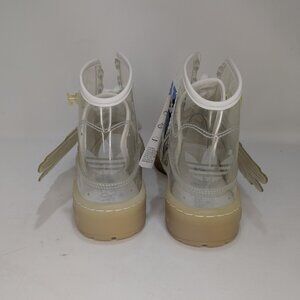 As if Jeremy Scott's adidas Originals by Originals model needed another reason to turn heads, this pair sports an "invisible" clear plastic build. Additional detailing is provided with white trim, laces, dubret and tongue patch. Finishing up below is a creamy white rubber outsole. Original laces with "Jeremy" teeth charms positioned at the forward toe cap.