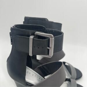 VERY VOLATILE Shoes Size 6 Tonalite Chunk Wedge Leather Sandal Heels Buckle