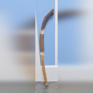 Handcrafted wooden walking stick with a natural finish. Perfect for hiking and outdoor adventures. This thing is old and rough. Perfect cosplay or costume piece. 32in long.