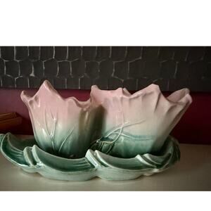 VERY rare McCoy Pottery HUMMINGBIRD double cache planter Pink Green 10+Inch