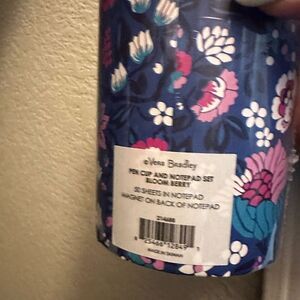 VERY BRADLEY BLOOM AND berry desk notepad n pen pencil holder NWT