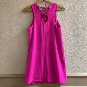 VeryJ neon pink tie back side zip sleeveless mini dress. Size small, lined, see pictures for details.