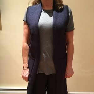 LONG VEST, NEVER WORN, TAG ATTACHED, FRINGE BOTTOM, ACRYLIC 56%, COTTON 30%, NYLON 12%, SPANDEX 2%