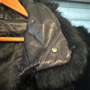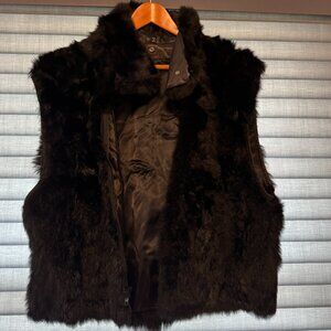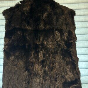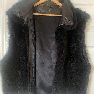 Fur Vest with Leather collar. Zippers in front, buttons at neck. Two deep side pockets. L.