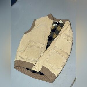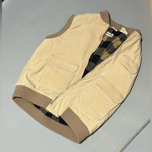 Stay stylish and comfortable with this men's tan vest featuring brown accents. Perfect for layering, this vest offers a versatile look for any occasion.