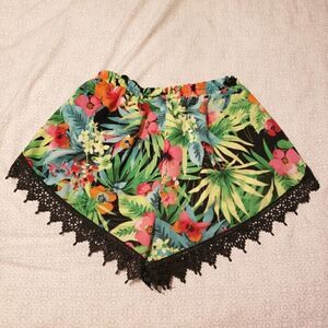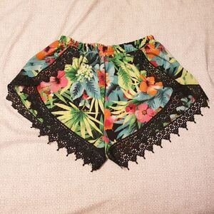 VESTIQUE TROPICAL FLORAL SHORTS WITH LACE TRIM