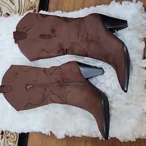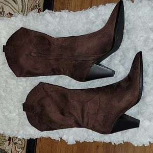 VETASTE Western boots dark brown suede chunky black heel side zip mid calf …NEW