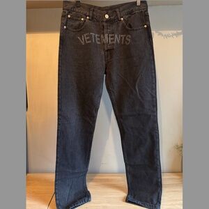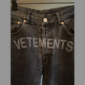 Brand new, never worn pair of VETEMENTS unisex laser jeans in washed black. Please see detailed measurements below for more information on sizing.
