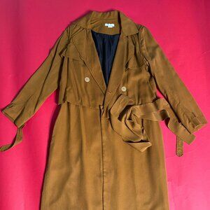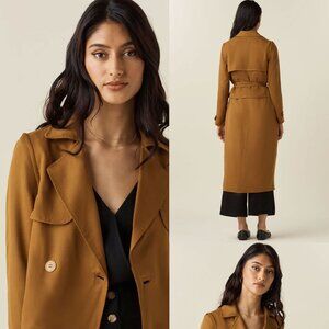 Meet the ultimate layering piece—The Convertible Trench by VETTA, a standout from the sustainable fashion brand known for its capsule wardrobe staples. This gently used trench coat in a warm gold tone offers four effortlessly chic configurations: