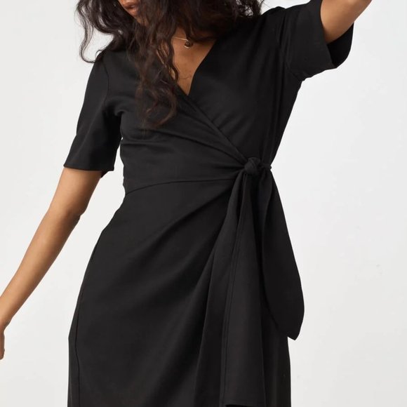 Worn once black VETTA Short Wrap Dress in Medium. Tag removed but will be included! From a pet friendly home.