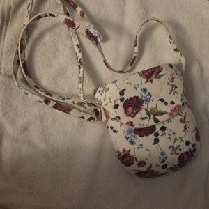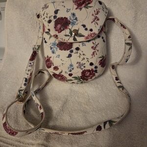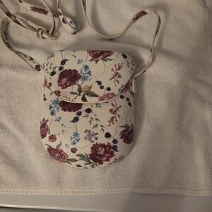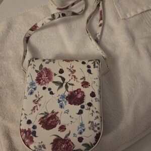 This elegant floral crossbody bag features a beautiful design, perfect for any occasion. The cream background with vibrant floral patterns adds a touch of sophistication to your look.