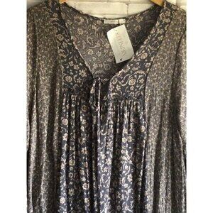 VEVERT Plus Size 1X Boho Print Lantern Sleeve Tassels Tie Neck Blouse NWT