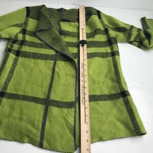 VEX Collection Sweater Womens Large Green Black Plaid Cardigan Open Front Knit