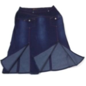 VEZUCCI Womens Unique STYLISH Jean Denim Skirt Size 20 Two Panel Splits /Stretch to Fabric