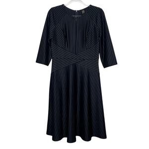 VFSHOW VFEMAG Striped Midi Dress Front Zipper Fit & Flare Navy White Size Large