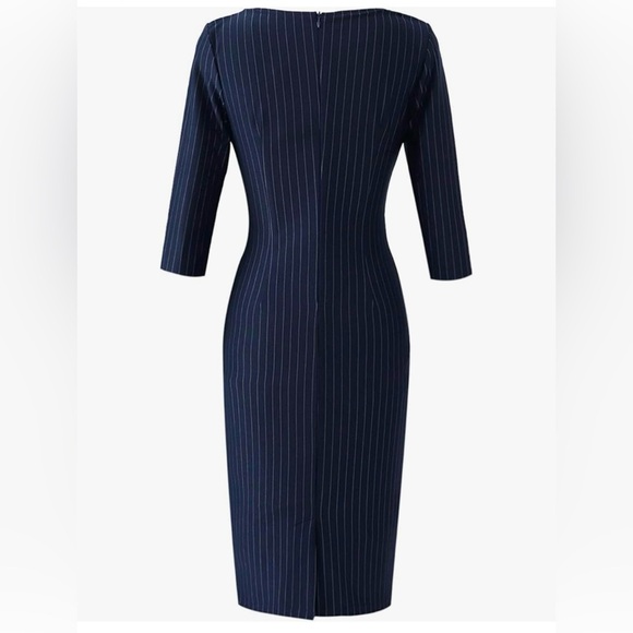 VFSHOW M Womens Slim Zipper Up Work Business Office Party Bodycon Pencil Sheath Dress navy pin striped front and back zippers