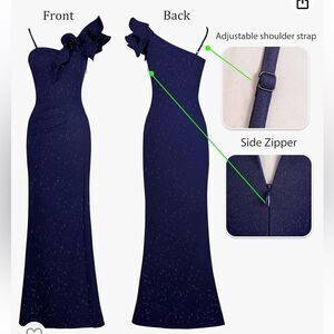 Style: One Shoulder with Single Spaghetti Strap shows your beautiful collarbone, Elegant Double-layered Ruffle Sleeve, Sexy V Neck, Ruched Waist Detail, Colorblock Design, Maxi Length, A Concealed Side Zipper, Mermaid Silhouette, Fitted, Thigh High Split with Adjustable Zipper [The adjustable zipper allows you to zip or unzip the slit so you can decide how much leg you want to show.]
