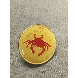 VFW Department of Ohio 1993 Cancer the Crab Enameled Red on Yellow Gold tone Pin