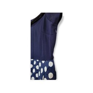 VFemage Polka Dot Navy Solid Short Sleeve Dress M