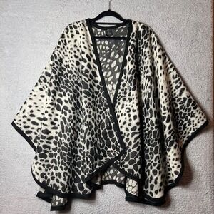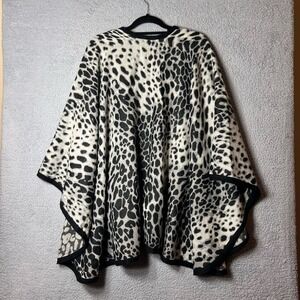 V.Fraas Poncho Womens OS Black Cream Leopard Print Poncho Wrap
